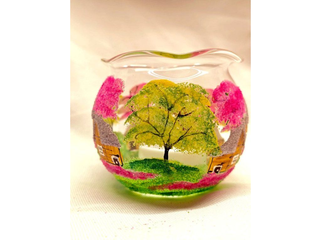 Ručně malovaný skleněný kalíšek malý hnědý na čajovou svíčku s jemným venkovským motivem. Vyrobený z českého skla, každý kus je originál malovaný s láskou. Kalíšek vytvoří útulnou atmosféru, ať už ho zapálíš večer doma nebo použiješ jako dekoraci. Každý kus je originál – drobné rozdíly v barvě, velikosti či rozložení motivu jsou přirozenou součástí ruční práce a dělají z každého kalíšku jedinečný kousek.