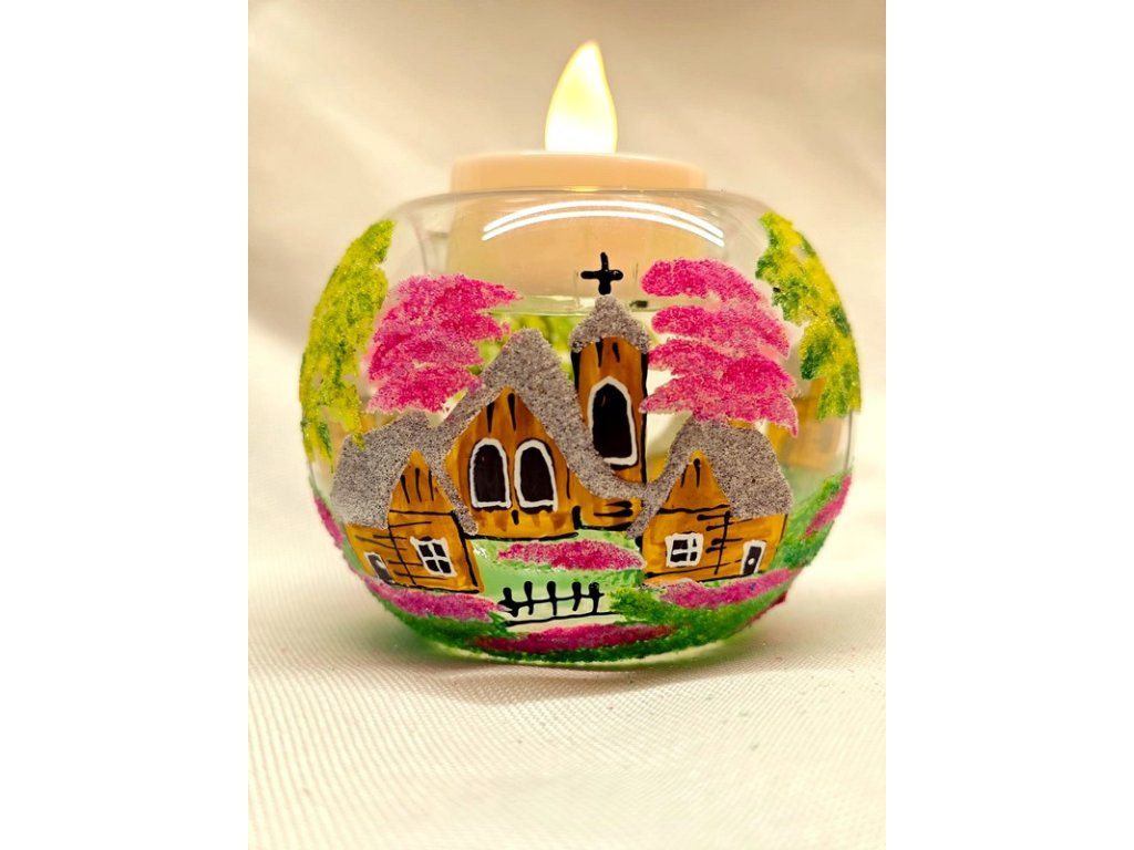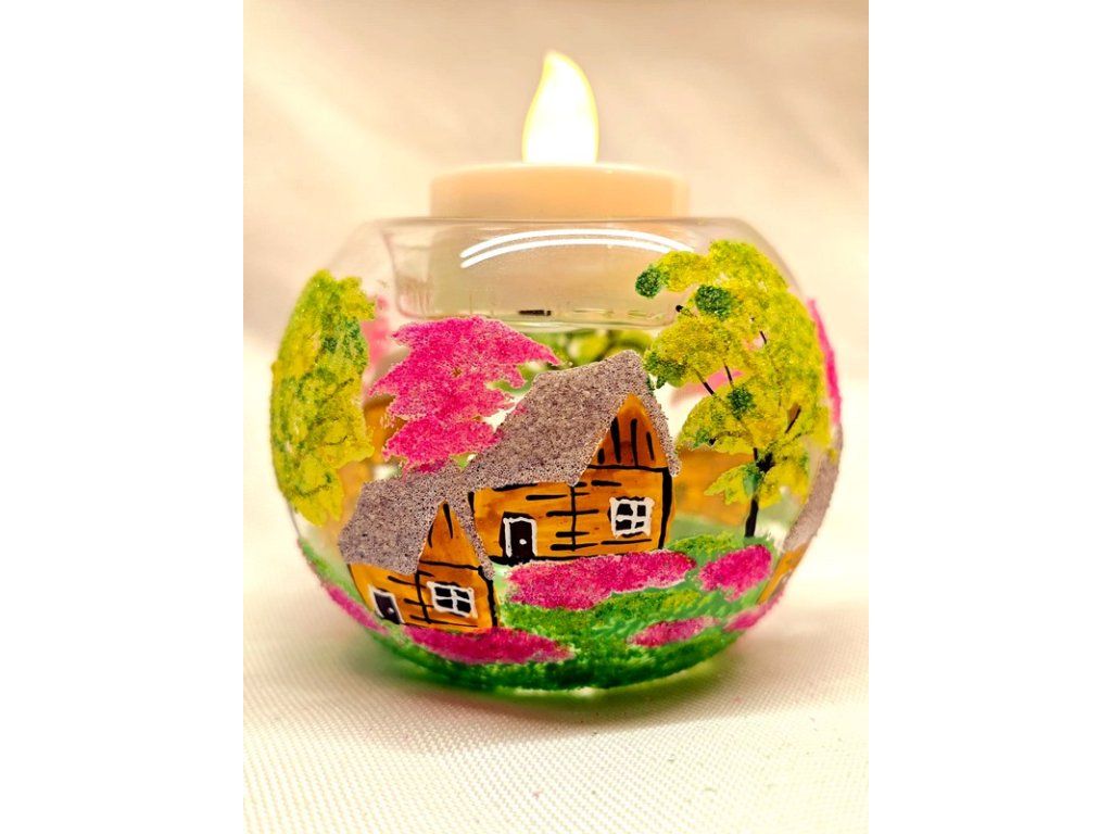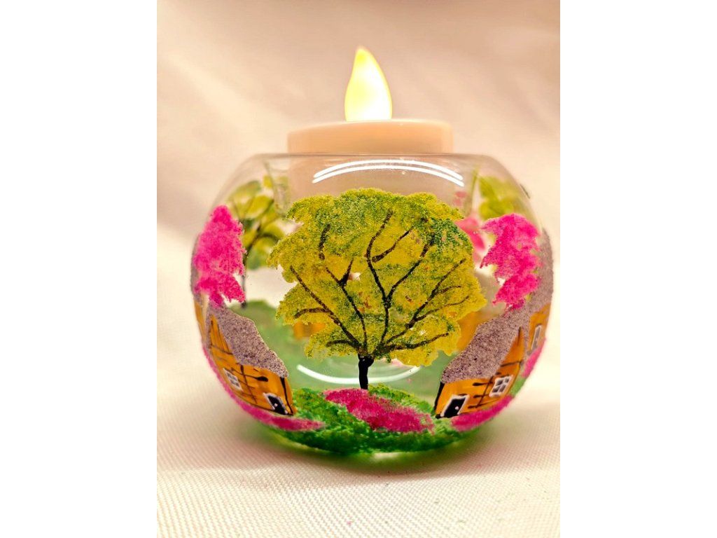 Ručně malovaná skleněná koule čajovka malá hnědá na čajovou svíčku s jemným venkovským motivem. Vyrobená z českého skla, každý kus je originál malovaný s láskou. Koule čajovka vytvoří útulnou atmosféru, ať už ji zapálíš večer doma nebo použiješ jako dekoraci. Každý kus je originál – drobné rozdíly v barvě, velikosti či rozložení motivu jsou přirozenou součástí ruční práce a dělají z každého kalíšku jedinečný kousek.