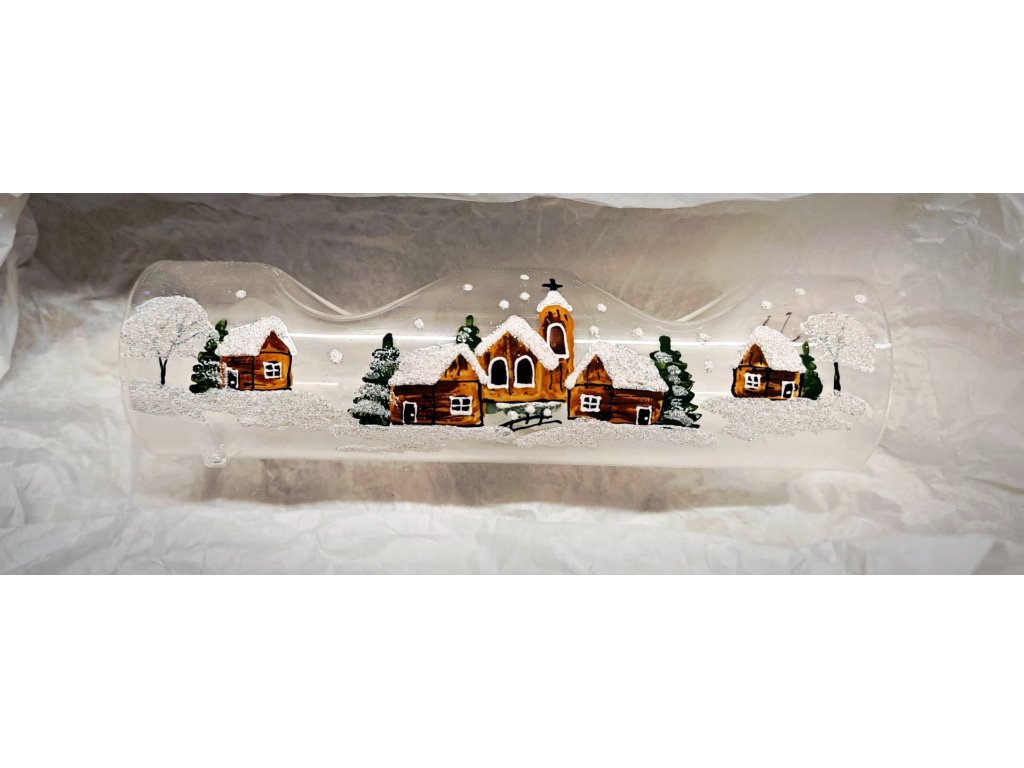 Ručně malovaný skleněný svícen na dvě čajové svíčky z českého skla. Jemný zimní motiv domečků a stromů vynikne krásně při rozsvícení obou svíček. Vyrobený z českého skla, každý kus je originál malovaný s láskou. Ideální na večerní pohodu, sváteční stůl nebo jako milý dárek. Každý kus je originál – drobné rozdíly v barvě, velikosti či rozložení motivu jsou přirozenou součástí ruční práce a dělají z každého svícnu jedinečný kousek. Svícen krásně doladí nejen vánoční a zimní výzdobu. Dostupné provedení: modré, červené nebo hnědé tóny.
