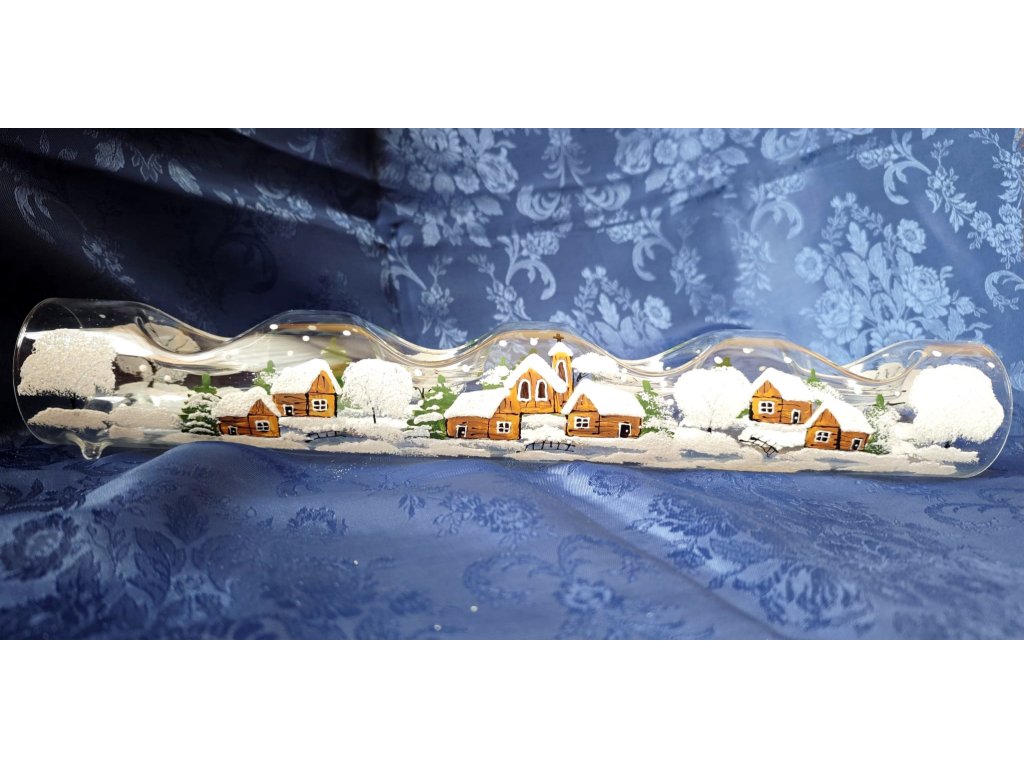 Ručně malovaný skleněný svícen na dvě čajové svíčky z českého skla. Jemný zimní motiv domečků a stromů vynikne krásně při rozsvícení obou svíček. Vyrobený z českého skla, každý kus je originál malovaný s láskou. Ideální na večerní pohodu, sváteční stůl nebo jako milý dárek. Každý kus je originál – drobné rozdíly v barvě, velikosti či rozložení motivu jsou přirozenou součástí ruční práce a dělají z každého svícnu jedinečný kousek. Svícen krásně doladí nejen vánoční a zimní výzdobu. Dostupné provedení: modré, červené nebo hnědé tóny.