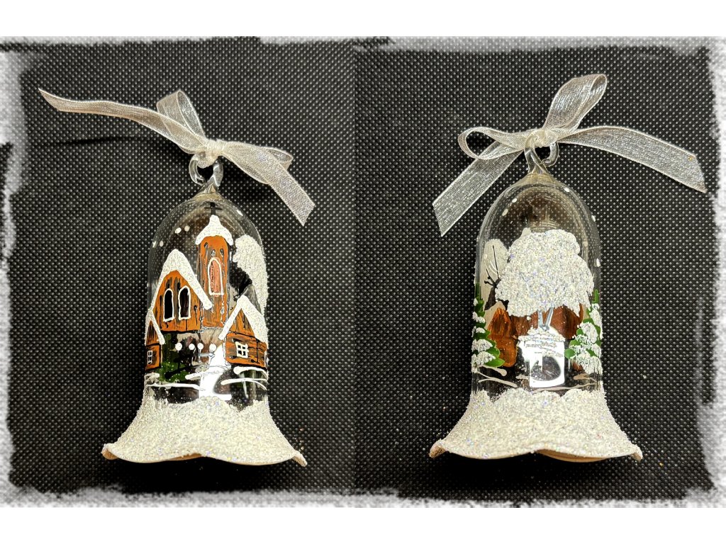 Jemný skleněný zvoneček ručně malovaný zimním motivem venkovských domečků a stromů. Vyrobený z českého skla tradičním sklářem, s láskou domalovaný do posledního detailu. Každý kus je originál – drobné rozdíly v barvě, velikosti či rozložení motivu jsou přirozenou součástí ruční práce a dělají z každého zvonečku jedinečný kousek. Zvoneček opravdu zvoní a krásně doladí nejen vánoční a zimní výzdobu. Dostupné provedení: modré, červené nebo hnědé tóny.